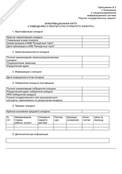 Информационная карта к извещению о результатах открытого конкурса для заключения государственного контракта на поставку товара (выполнения работ, оказания услуг)