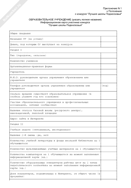 Информационная карта участника конкурса «Лучшие школы Подмосковья»