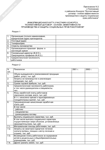 Информационная карта участника конкурса «Коллективный договор — основа эффективности производства и защиты социальных прав работников» на территории муниципального образования «Домодедовский район» Московской области (рекомендуемый образец заполнения)