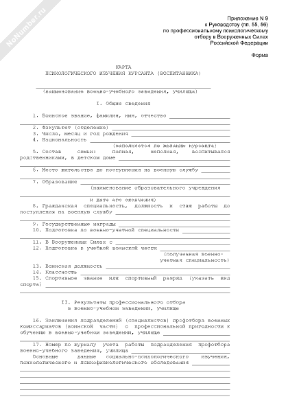 Карта психологического изучения курсанта (воспитанника)