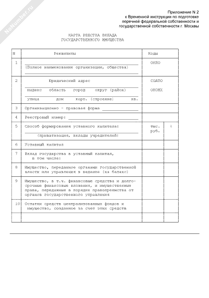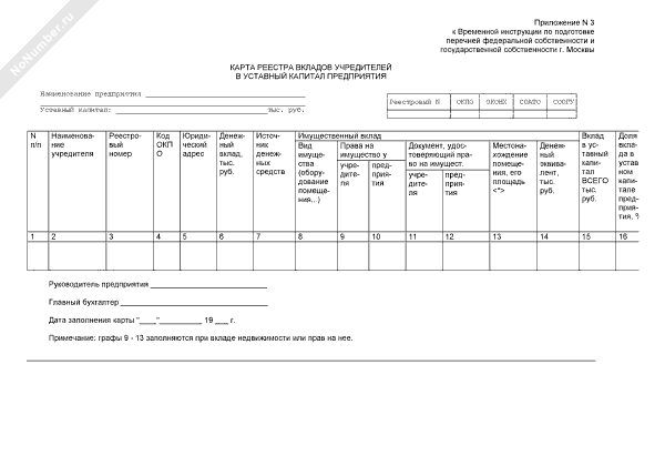 Карта реестра вкладов учредителей в уставный капитал предприятия