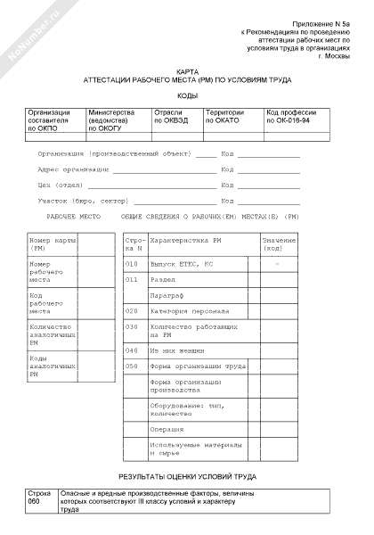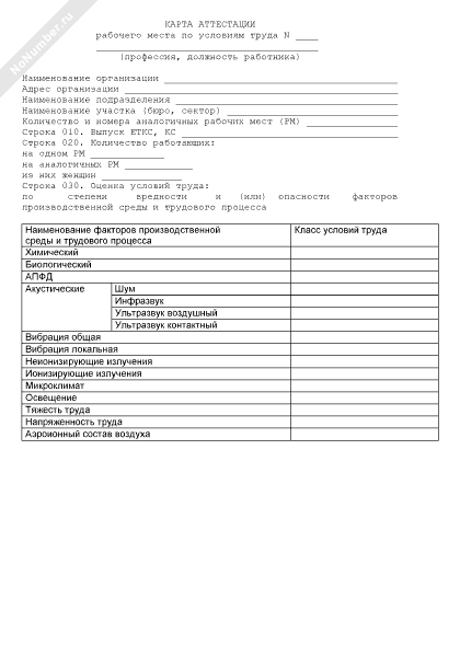 Карта аттестации рабочего места по условиям труда