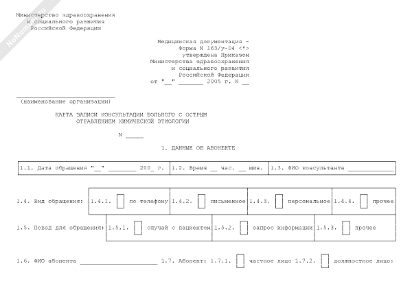 - Номер типовой формы 163/У-04