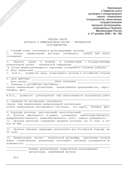 Учетная карта договора о международном научно-техническом сотрудничестве (рекомендуемый образец заполнения)