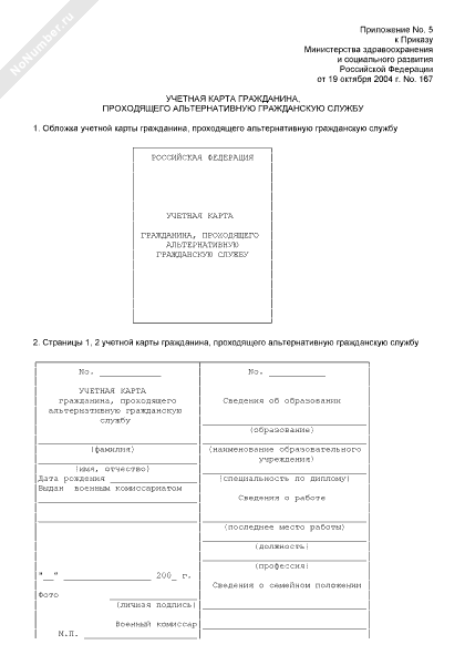Учетная карта гражданина, проходящего альтернативную гражданскую службу (рекомендуемый образец заполнения)
