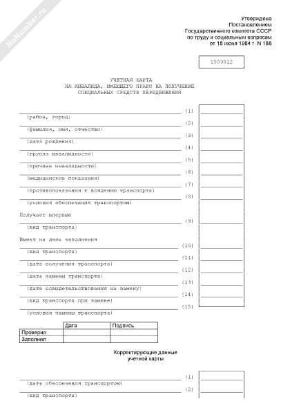 Учетная карта на инвалида, имеющего право на получение специальных средств передвижения. Форма № 1503012 (рекомендуемый образец заполнения)