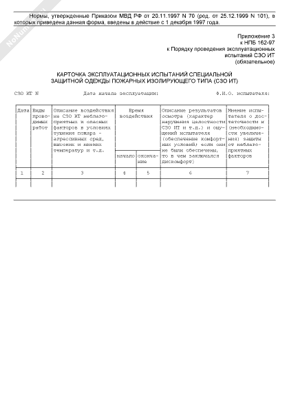 - 321Карточка эксплуатационных испытаний специальной защитной одежды пожарных изолирующего типа