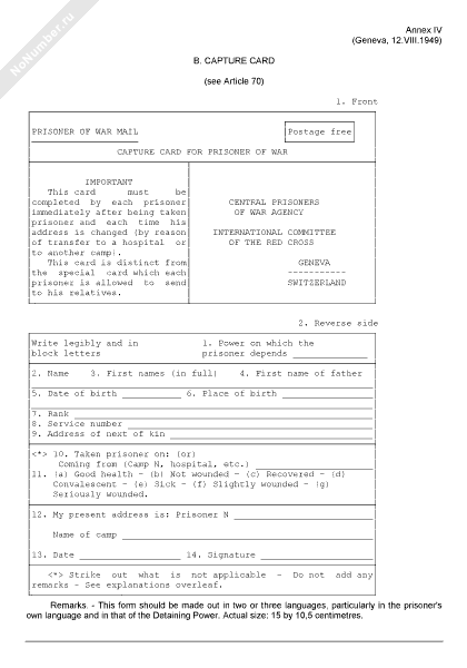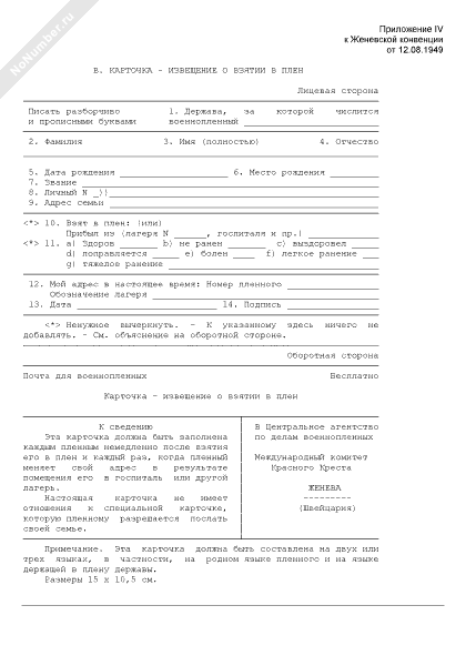 - 335Карточка-извещение о взятии в плен (на английском языке)