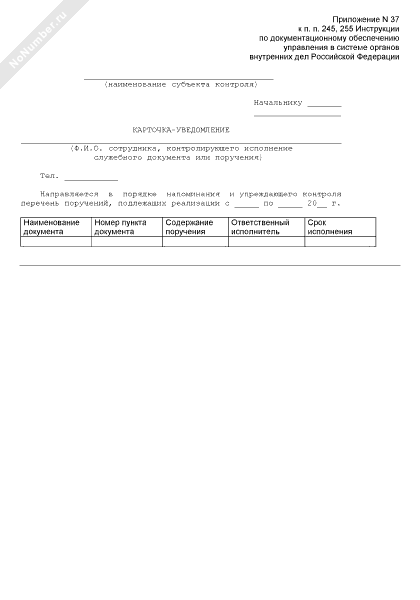 - 340Карточка-уведомление, направляемая в порядке напоминания и упреждения контроля в МВД России