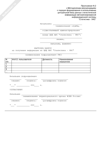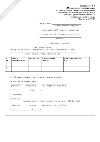 - 330Карточка-заявка на право доступа к информации центральной базы данных статистической автоматизированной информационной системы «Статистика — УИС»