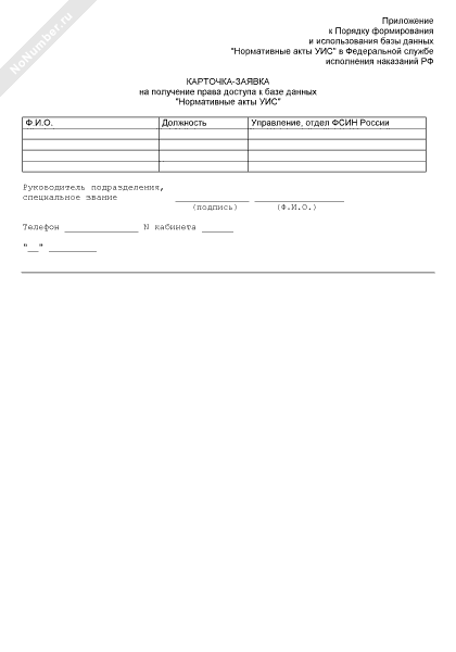 - 331Карточка-заявка на получение права доступа к базе данных «Нормативные акты УИС» в Федеральной службе исполнения наказаний