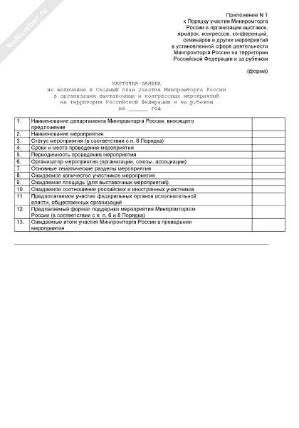 - 332Карточка-заявка на включение в Сводный план участия Минпромторга России в организации выставочных и конгрессных мероприятий на территории Российской Федерации и за рубежом