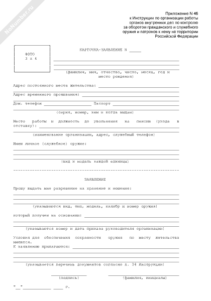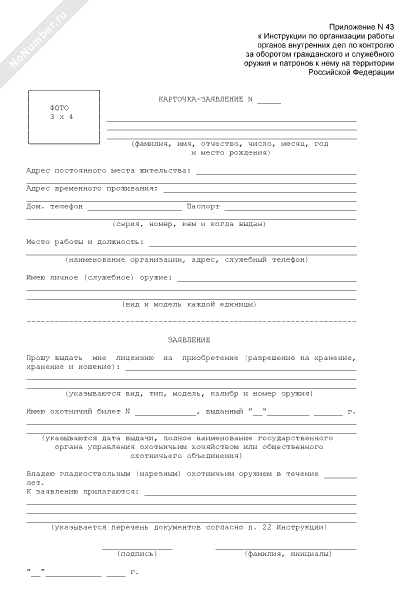 - 333Карточка-заявление о выдаче лицензии для граждан Российской Федерации, впервые приобретающих газовые пистолеты или револьверы, огнестрельное бесствольное оружие самообороны отечественного производства, сигнальное оружие либо приобретающих огнестрельное гладкоствольное длинноствольное оружие в целях самообороны