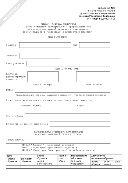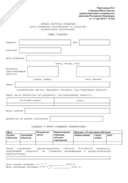 - 367Личная карточка слушателя цикла повышения квалификации по вопросам профилактики заболеваний