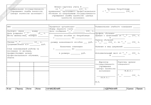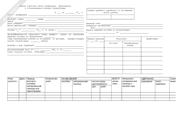 - 375Личная карточка учета гражданина, признанного в установленном порядке безработным