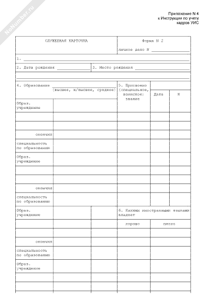 - 507Служебная карточка на сотрудника уголовно-исполнительной системы (форма № 2)