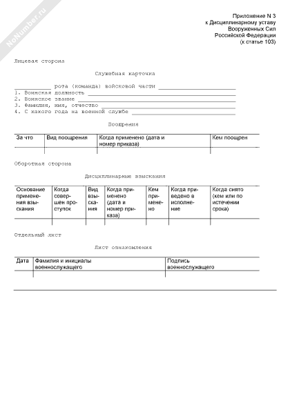 - 506Служебная карточка поощрений и дисциплинарных взысканий, предусмотренных дисциплинарным уставом, по личному составу воинской части (подразделения)