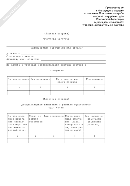 - 505Служебная карточка учета поощрений, дисциплинарных взысканий, решений судов чести сотрудника уголовно-исполнительной системы