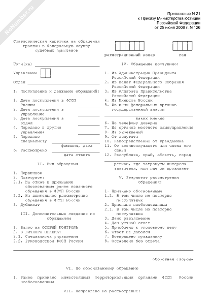 - 518Статистическая карточка на обращения граждан в Федеральную службу судебных приставов