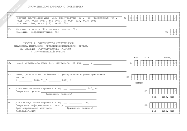 - 515Статистическая карточка о потерпевшем (форма № 5)