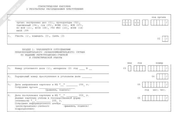 - 511Статистическая карточка о результатах расследования преступления. Форма № 1.1