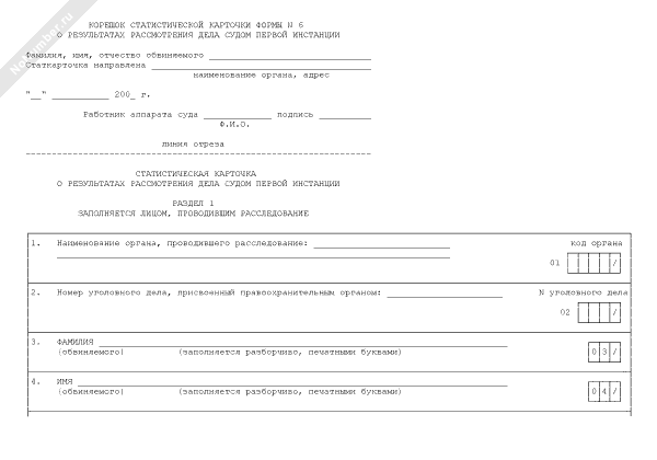 - 519Статистическая карточка на подсудимого