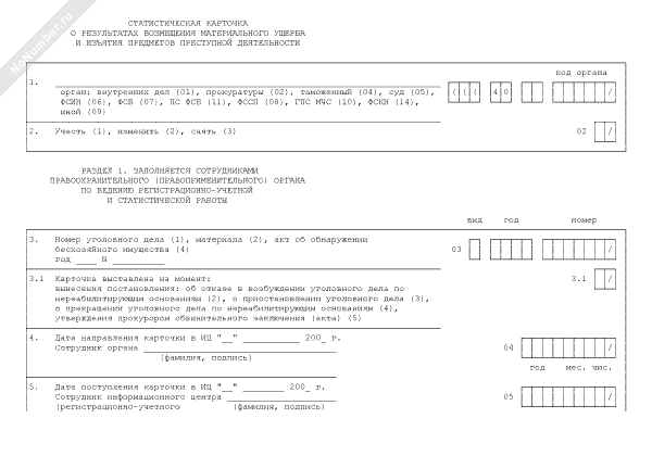 - 510Статистическая карточка на выявленное преступление (форма № 1)