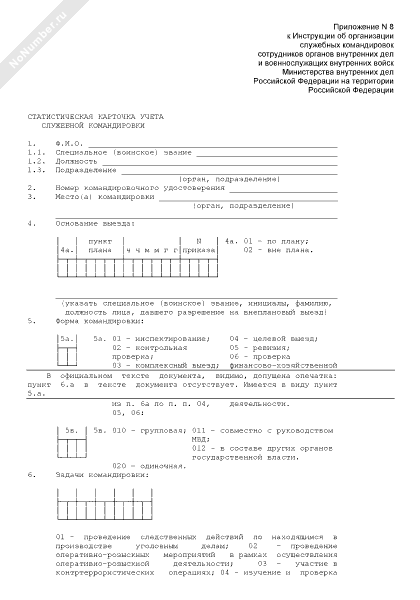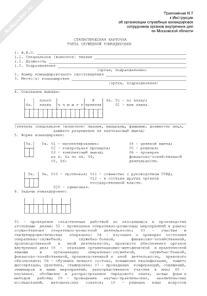 - 509Статистическая карточка учета служебной командировки сотрудника органов внутренних дел по Московской области