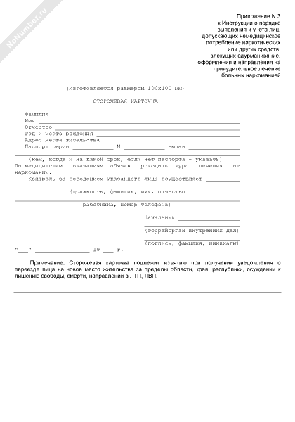 - 521Сторожевая карточка на лиц с диагнозом «Наркомания»