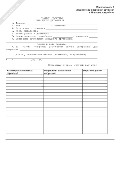- 532Учетная карточка народного дружинника по Лотошинскому району Московской области