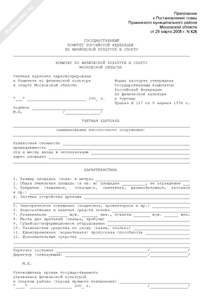 - 540Учетная карточка плоскостного физкультурно-оздоровительного или спортивного сооружения Московской области