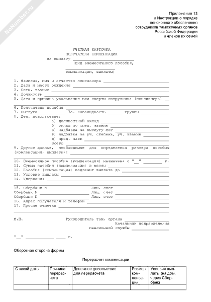 - 529Учетная карточка получателя компенсации на выплату ежемесячного пособия (компенсации, выплаты)