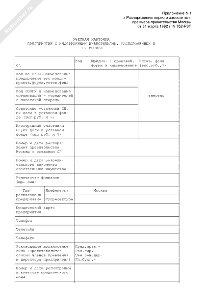 - 537Учетная карточка предприятий с иностранными инвестициями, расположенных в г. Москве