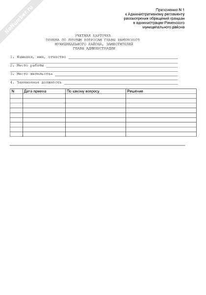 - 531Учетная карточка приема по личным вопросам главы Раменского муниципального района, заместителей главы администрации