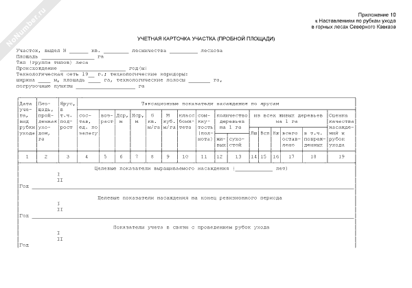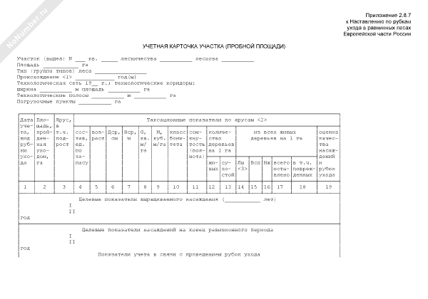 - 528Учетная карточка участка (пробной площади) в равнинных лесах европейской части России