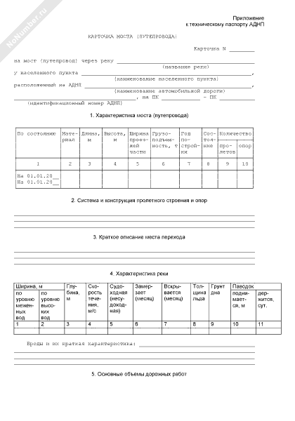 Карточка моста (путепровода) (приложение к техническому паспорту автомобильной дороги необщего пользования)