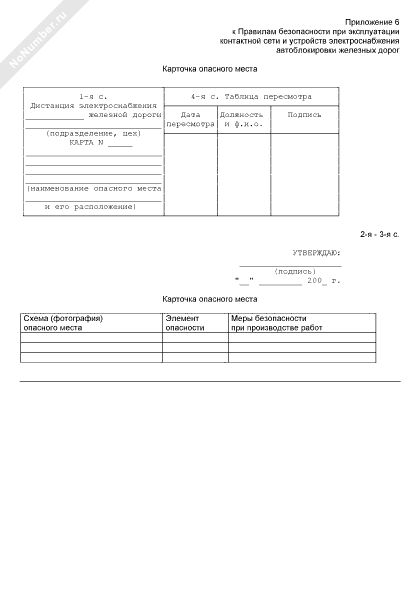 Карточка опасного места для выполнения работ электроснабжения в опасных местах при эксплуатации контактной сети и устройств электроснабжения автоблокировки железных дорог (рекомендуемый образец заполнения)