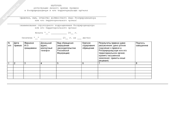 Карточка регистрации личного приема граждан в Росприроднадзоре и его территориальных органах (рекомендуемый образец заполнения)