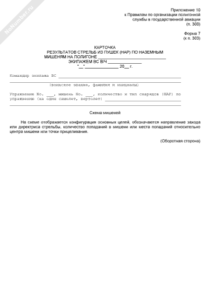 Карточка результатов стрельб из пушек (НАР) по наземным мишеням на полигоне (форма № 7)