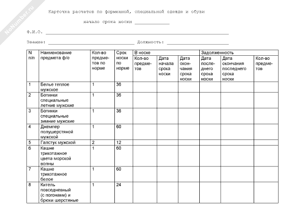 Карточка учета выдачи форменной одежды работнику лесного хозяйства (рекомендуемый образец заполнения)
