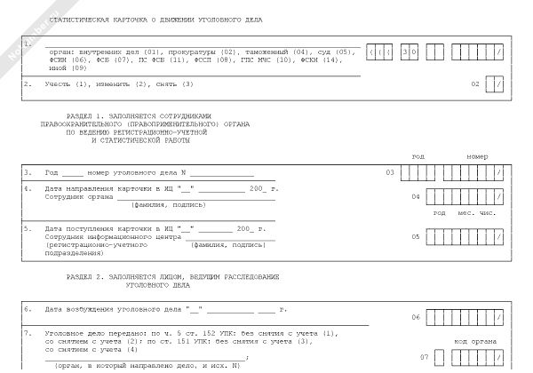 Статистическая карточка о движении уголовного дела (форма № 3)