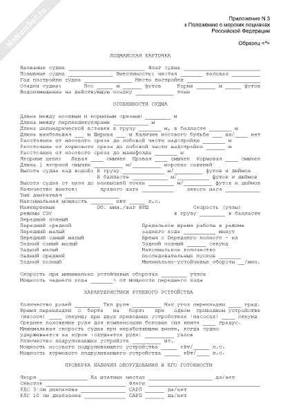 Регистрационная карточка судна (рекомендуемый образец заполнения)