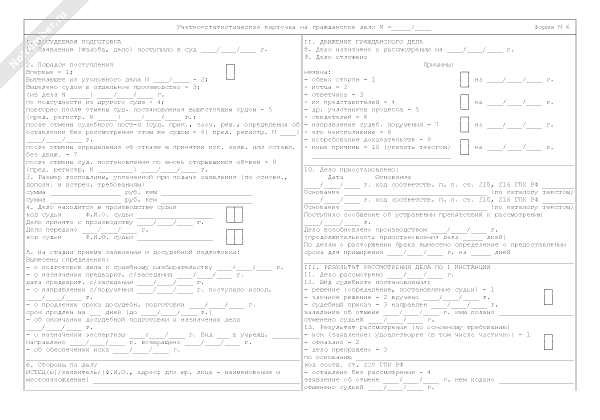 Учетно-статистическая карточка на гражданское дело (форма № 6)