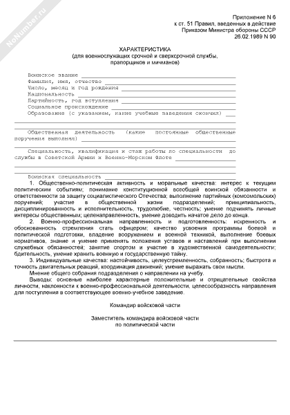 Характеристика (для военнослужащих срочной и сверхсрочной службы, прапорщиков и мичманов) кандидатов на учебу в военно-учебные заведения Министерства обороны СССР