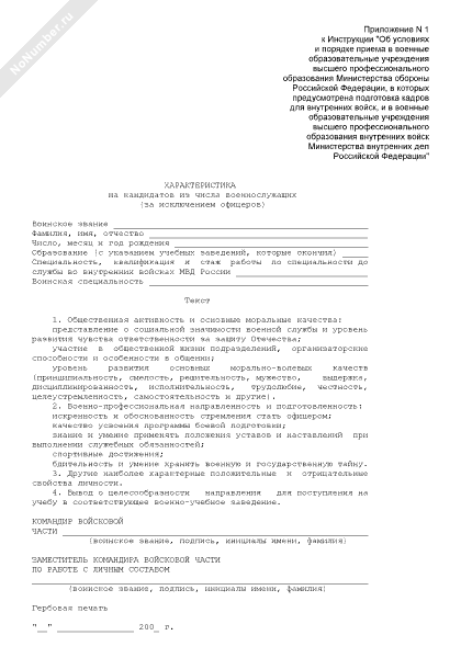 Характеристика на кандидатов из числа военнослужащих (за исключением офицеров) для поступления на учебу в военно-учебное заведение