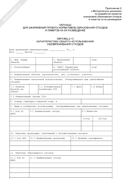 Характеристика объекта использования/обезвреживания отходов (рекомендуемый образец заполнения)