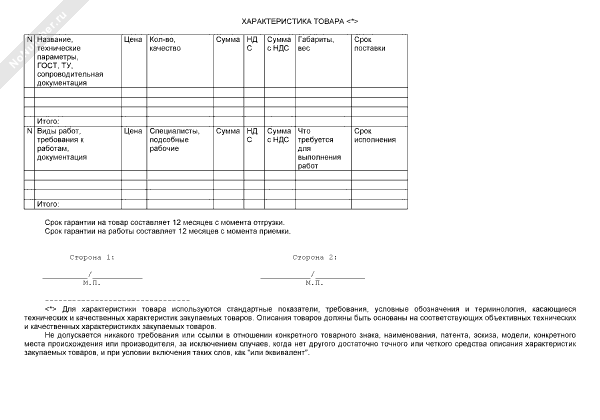 Характеристика товара (приложение 1 к договору поставки и монтажа (шефмонтажа) товара)