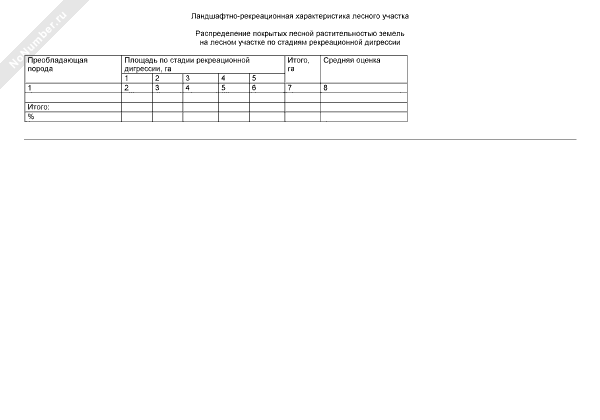 Ландшафтно-рекреационная характеристика лесного участка. Распределение покрытых лесной растительностью земель на лесном участке по стадиям рекреационной дигрессии (рекомендуемый образец заполнения)