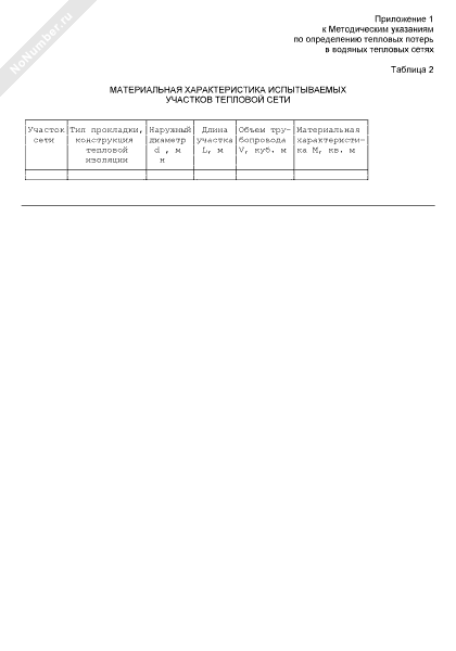 Материальная характеристика испытываемых участков тепловой сети (рекомендуемый образец заполнения)