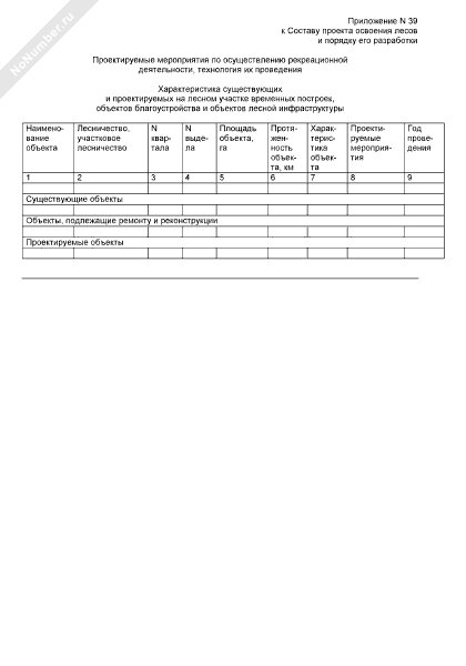 Проектируемые мероприятия по осуществлению рекреационной деятельности, технология их проведения. Характеристика существующих и проектируемых на лесном участке временных построек, объектов благоустройства и объектов лесной инфраструктуры (рекомендуемый образец заполнения)